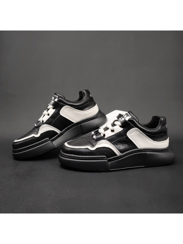 真皮运动休闲鞋男厚底板鞋男款潮鞋欧洲站男鞋小众男生增高鞋