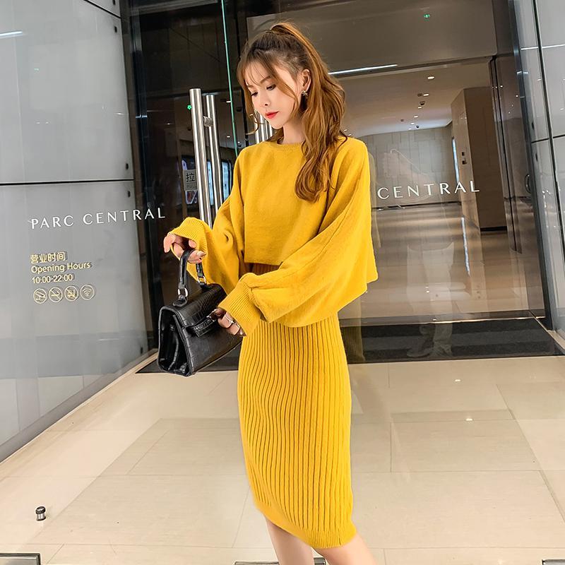 商品名称:慵懒风针织衫毛线套装裙2023年新款秋冬毛衣裙两件套女