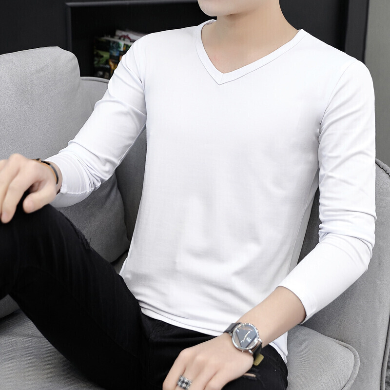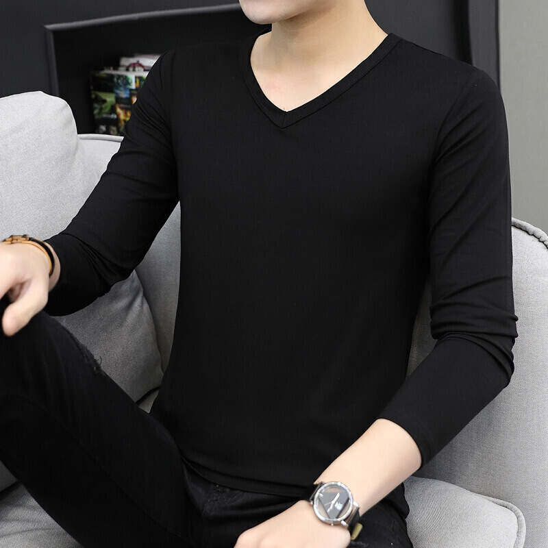 新款男士长袖t恤V领潮牌上衣服小衫潮流卫衣男 ...