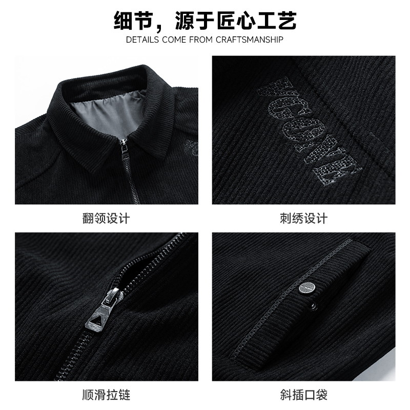 商品名称:罗春秋季夹克男士翻领上衣服新款加绒棉服冬装潮流休闲商务灯芯绒外套男装