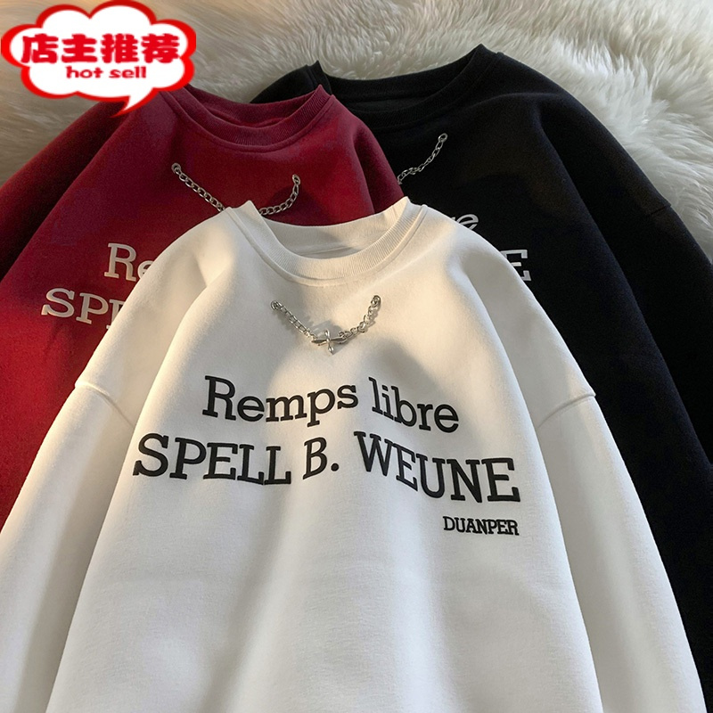 美式卫衣男新款潮牌印花上衣港风精美项链设计衣服