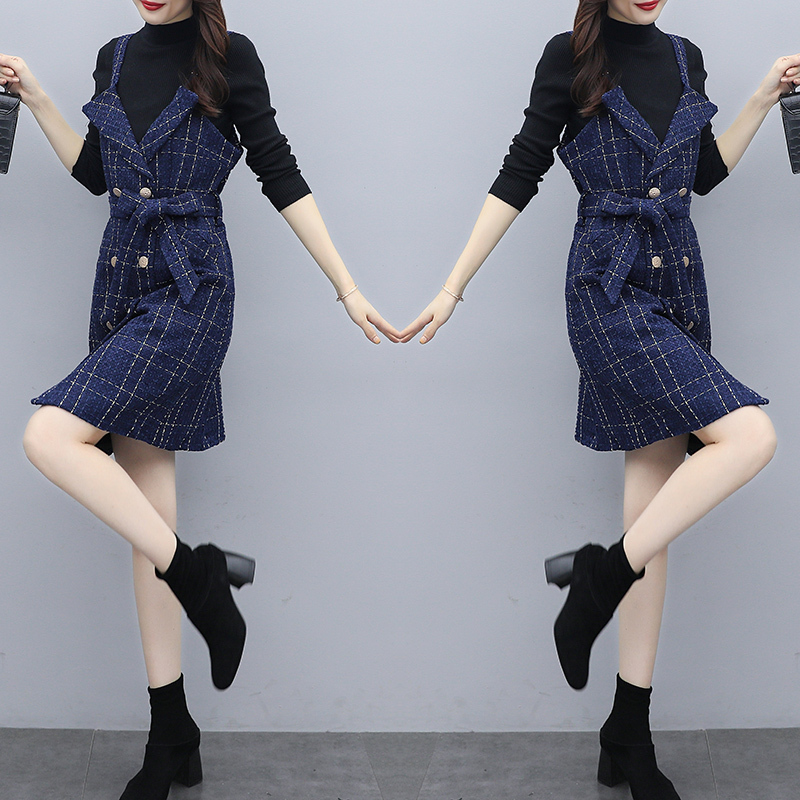 新款名媛风打底小香背带裙女收腰显瘦连衣裙子两件套装女装