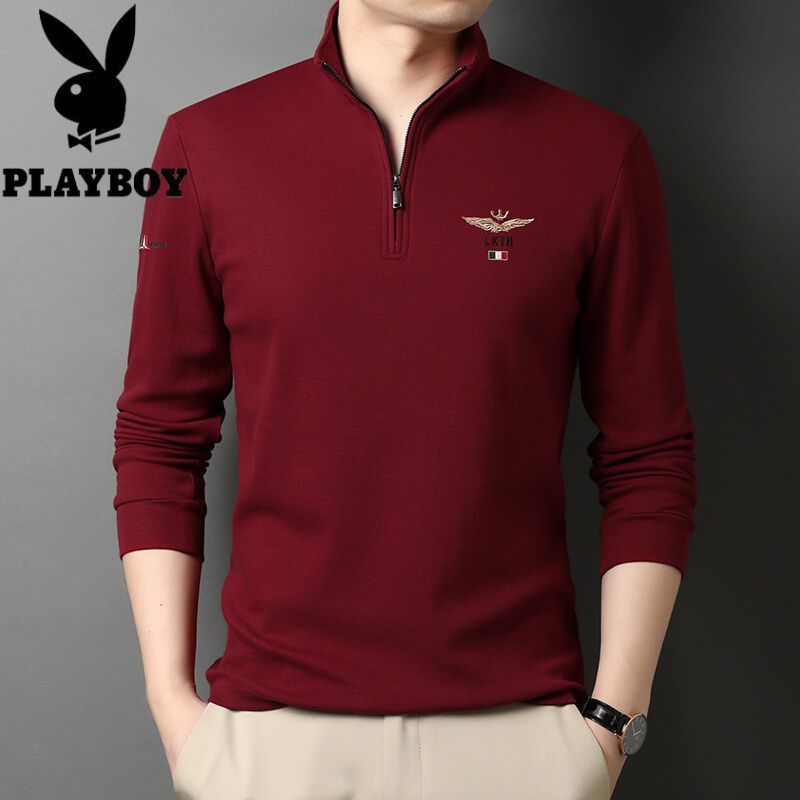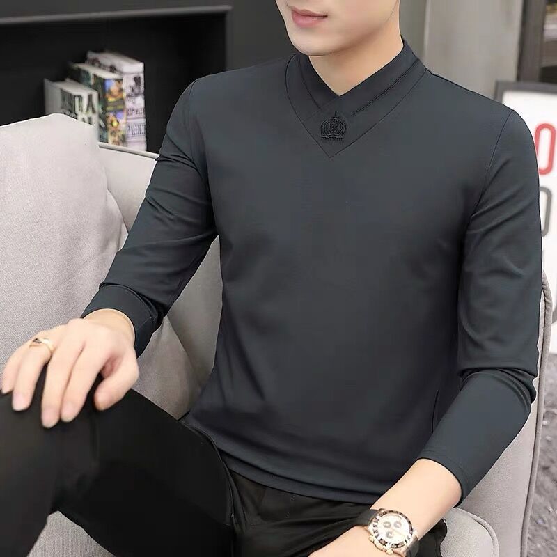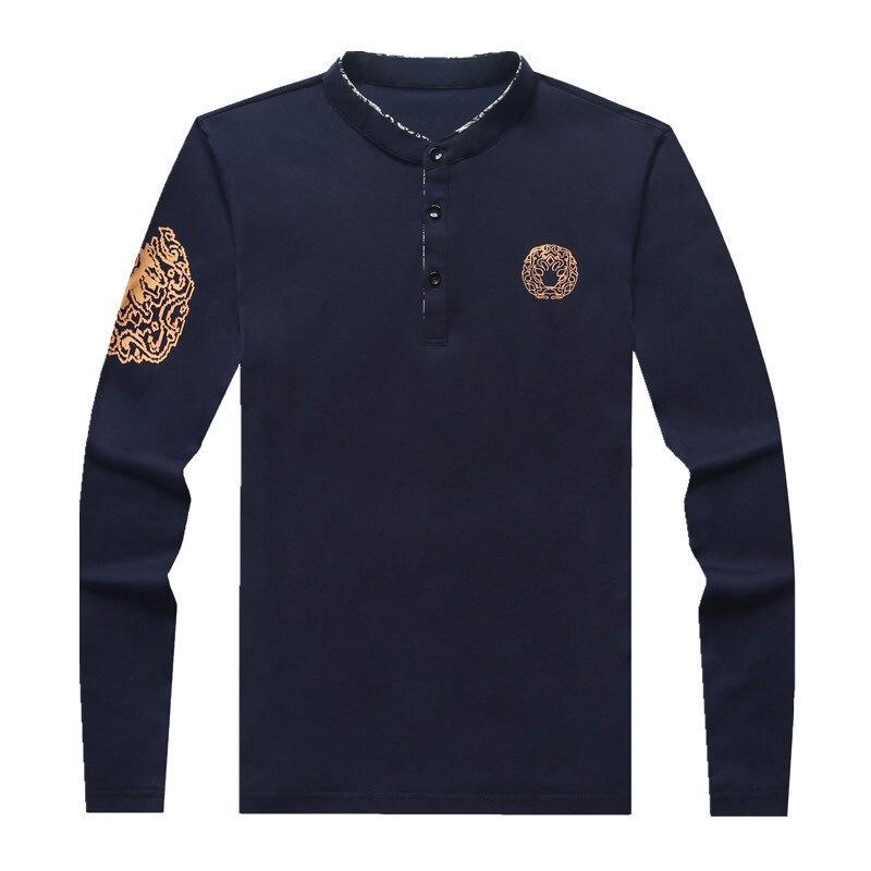 男装衣服纯棉刺绣立领长袖T恤男时尚休闲修身男士体恤2023秋