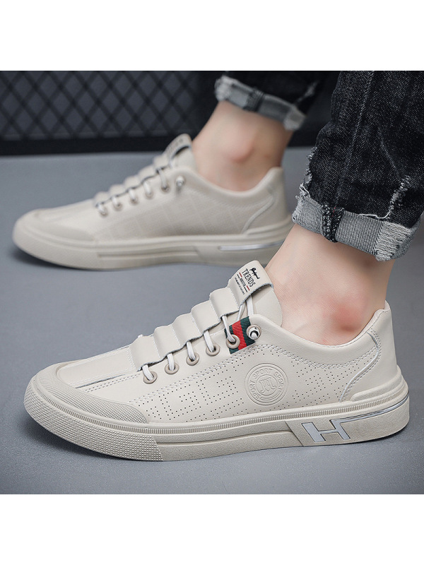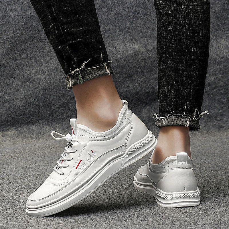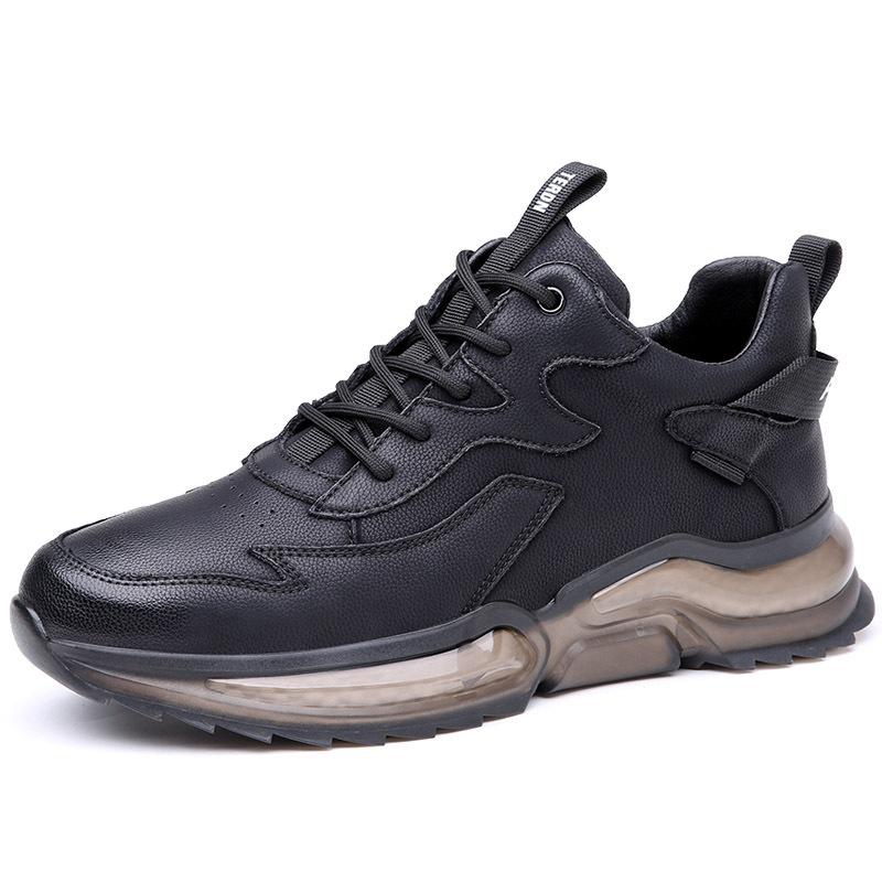 新款透气厚底运动休闲皮鞋男士真皮百搭增高潮鞋
