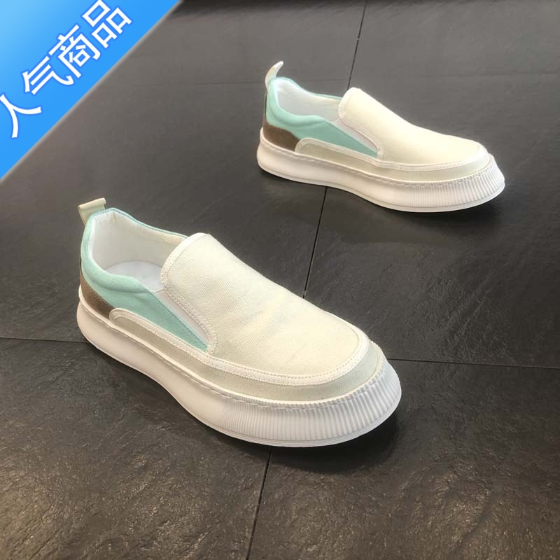 男款秋冬季懒人超轻厚底休闲潮鞋一脚蹬帆布千层底工作