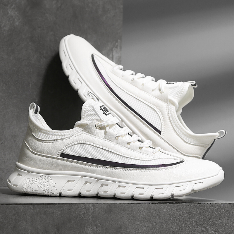 新款透气厚底运动休闲皮鞋男士真皮百搭增高潮鞋